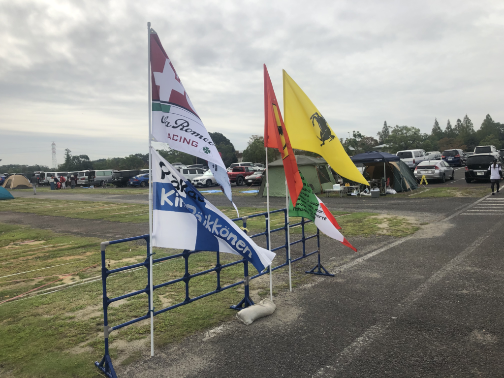 駐車場にもファン方たちが持ってきた大きな旗!