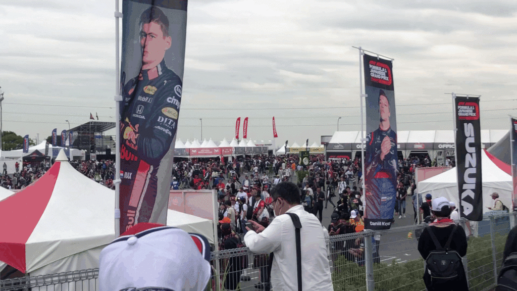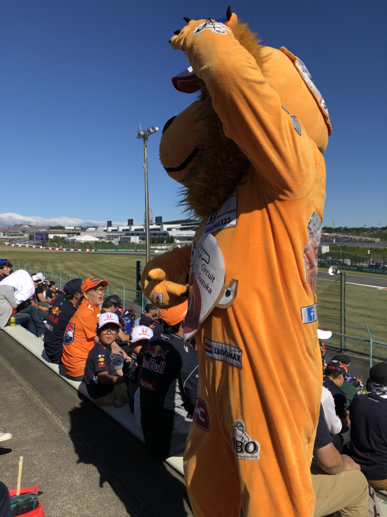 フェルスタッペンのがライオンの着ぐるみを着て応援していました。日本グランプリはコスプレの人も多いため、頼めば写真を一緒に撮ってくれるかもしれません。