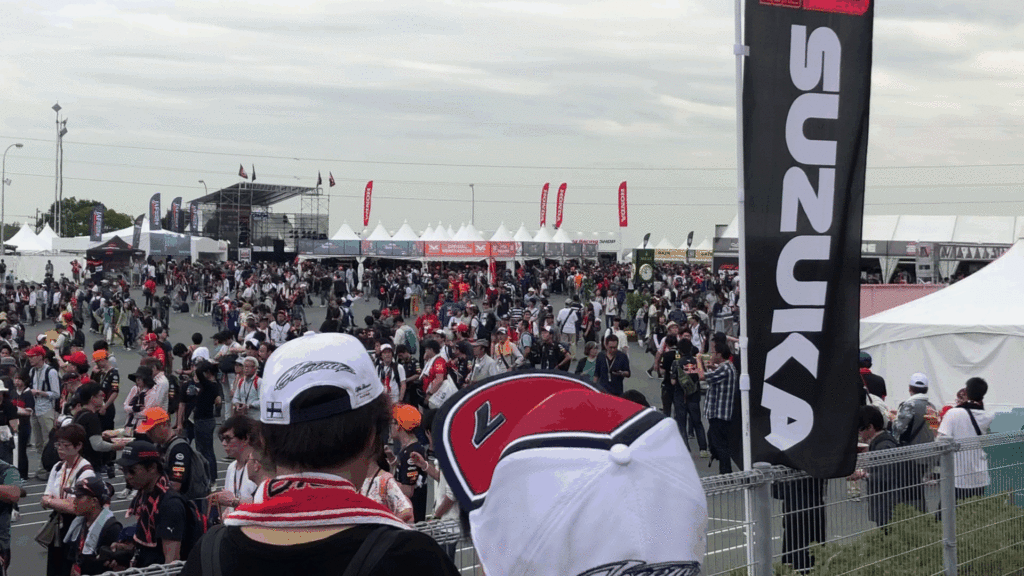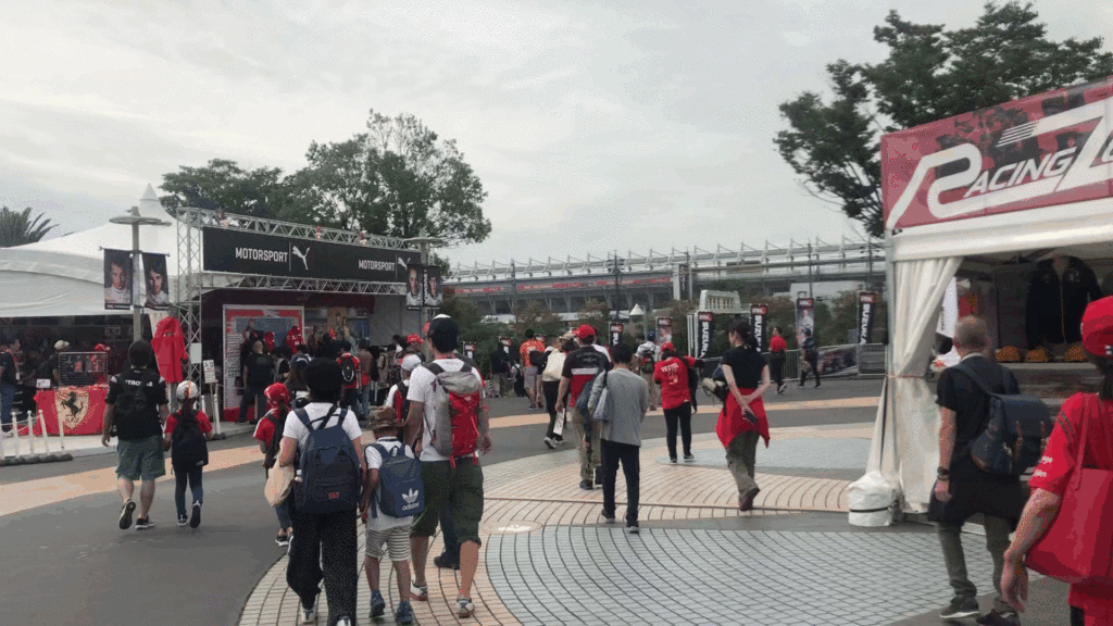 場所はサーキットに行くまでの通り道や、イベント会場、サーキット観客席の周りにもあります。